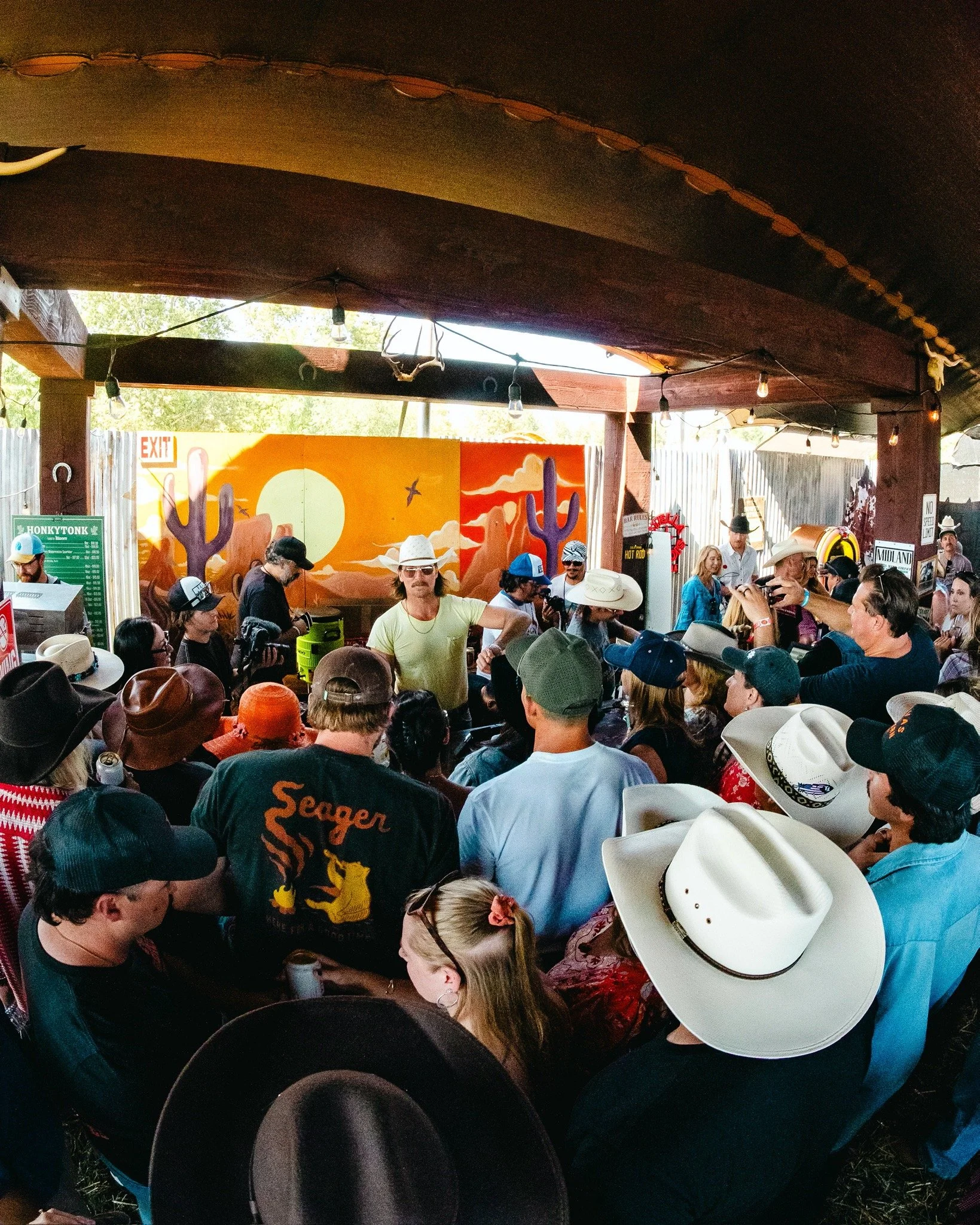 From salvaged license plates and a crashed Fiat embedded into the wall to a working jukebox and live music between race sessions, every detail reinforced the narrative. The space functioned as both a social hub and a viewing lounge, giving fans a place to gather, drink, and stay engaged throughout the event — a destination that extended fan engagement beyond track time.